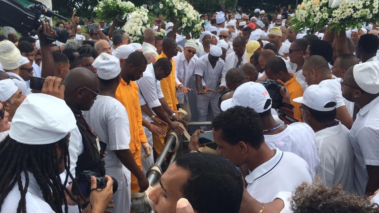 Uma multidão participou da cerimônia. Vestidos de branco, como manda a tradição da religião, filhos e filhas de santo do templo religioso liderado pela ialorixá, além de representantes de terreiros irmãos, acompanharam as últimas homenagens.