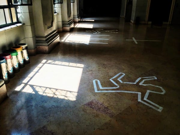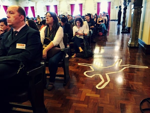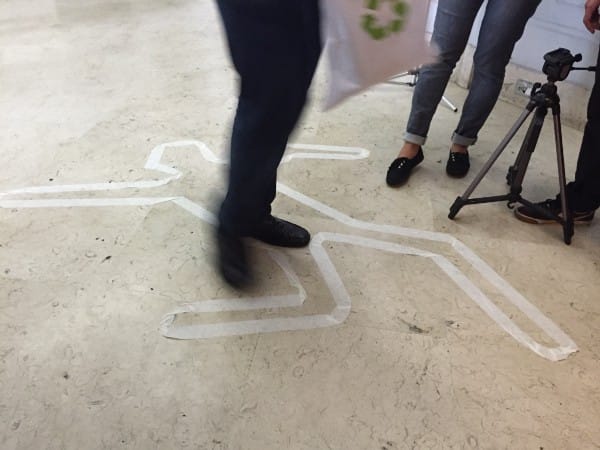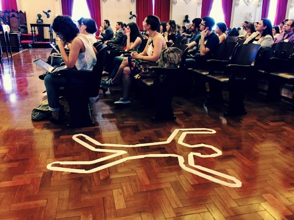 Essas marcas no chão causam estranhamento num primeiro momento e, instintivamente, você se desvia. Mas num segundo momento, você se esquece e pisa no morto. Isso não pode acontecer. Nunca! Esquecer os mortos, esquecer do que aconteceu naquele dia no Carandiru, naquela noite em Osasco, em Carapicuiba, na Luz, ou com o Flavio Santana.