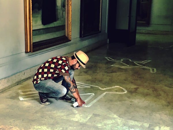 A intervenção NÃO PISE NOS MORTOS surgiu dessa lembrança. A marca dos mortos feitas com tinta branca. A marca que a própria polícia usa para marcar um morto. A marca feita para você não pisar no morto. A marca para você não esquecer que ali alguém caiu morto.