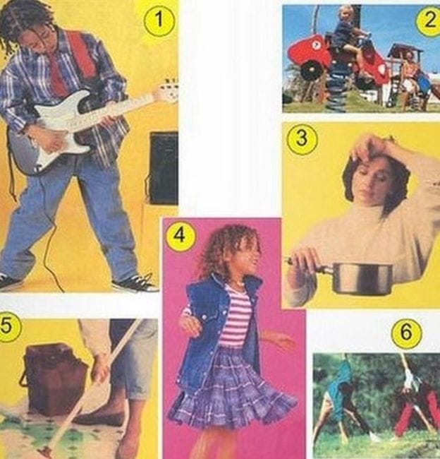 Um livro ilustrado paquistanês onde todos os políticos e pessoas poderosas são homens. Na Turquia, um cartum mostra um garoto sonhando em ser médico. Enquanto isso, uma garota se imagina como uma noiva de vestido branco.