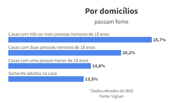 Para a pesquisadora, a parte mais dolorosa da pesquisa foi ver como a fome atinge mais as casas onde há três ou mais pessoas abaixo de 18 anos —em um em cada quatro desses domicílios (25%), há fome.