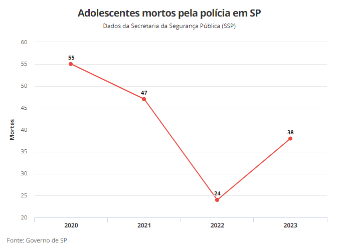 Segundo o documento, o número de adolescentes mortos pela polícia aumentou 41% entre 2022 e 2023: