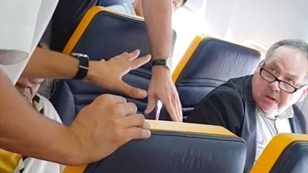 Um comissário da Ryanair disse ao agressor: “Não seja tão grosseiro, você precisa se acalmar”.
