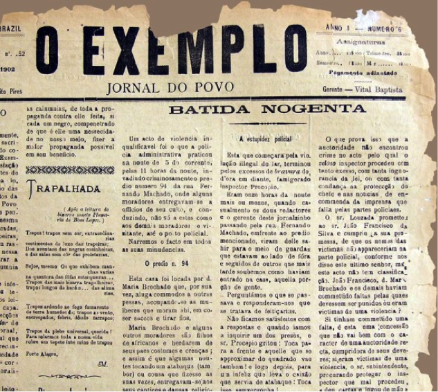 “O Exemplo”, enquanto espaço de memórias negras, tornou-se um mecanismo de reapropriação da memória e da história do passado do negro em Porto Alegre. No edital do seu primeiro número, em 11 /12/1892, registrou: