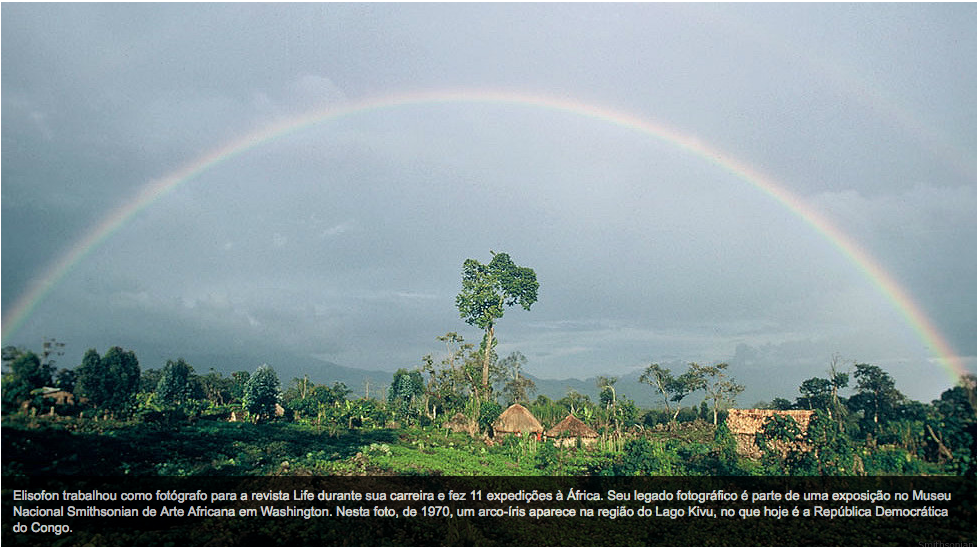 Elisofon trabalhou como fotógrafo para a revista Life durante sua carreira e fez 11 expedições à África. Seu legado fotográfico é parte de uma exposição no Museu Nacional Smithsonian de Arte Africana em Washington. Nesta foto, de 1970, um arco-íris aparece na região do Lago Kivu, no que hoje é a República Democrática do Congo.