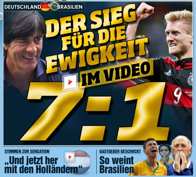 A Alemanha mantém o Brasil na mais alta consideração. Nós respeitamos a graça e a grandeza de lendas como Garrincha, Sócrates, Pelé, Rivelino e tantos outros. Sabemos também de experiência própria — quando o Brasil de Ronaldo nos despachou na Copa do Mundo de 2002 com facilidade – que vocês ainda são o celeiro dos jogadores mais talentosos do mundo.
