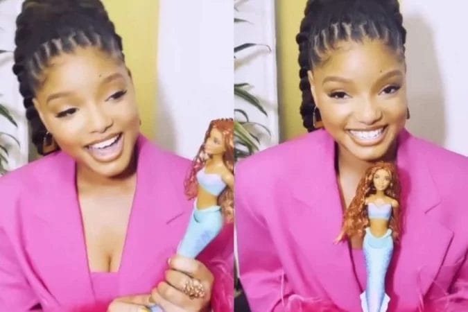 Atriz Halle Bailey se emociona com boneca negra de ‘A Pequena Sereia’
