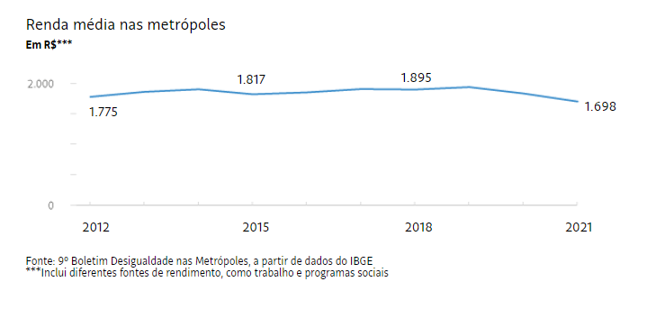 É o maior nível de uma série histórica de dez anos, iniciada em 2012, aponta o 9º Boletim Desigualdade nas Metrópoles. O estudo analisa estatísticas das 22 principais áreas metropolitanas do país.