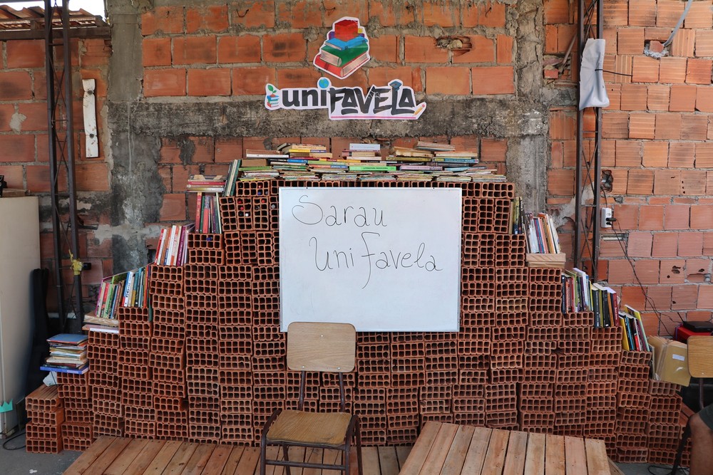 O sucesso veio com uma mesa-estante de tijolos e um pequeno quadro doado em uma sala de aula improvisada – a laje da casa de um dos estudantes.