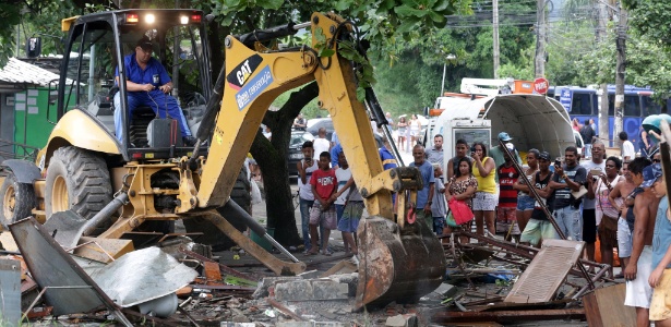 “Que covardia”, dizia um homem, enquanto assistia quiosques de pequenos comerciantes ser amassados pelas máquinas. Sentado numa cadeira de plástico observando os escombros, outro homem lamentava. “Criei minha família aqui”, afirmou, apontando para uma pequena barraca de metal sendo destruída. “Tô com 53 anos de idade, pago R$ 650 de aluguel, mais R$ 100 de luz.”