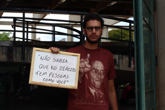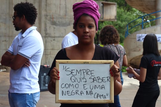 Uma estudante de Antropologia da Universidade de Brasília (UnB) fotografou pessoas que transitavam pelo campus e pediu que elas posassem com frases preconceituosas que já ouviram: “Para uma negra, você é até bonita”, “Como você faz para lavar esse cabelo?”, “Você sabe ler?”, “Você tem sorte de ser negro, nem precisa estudar para passar no vestibular”