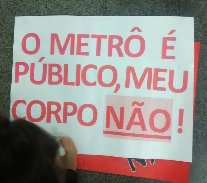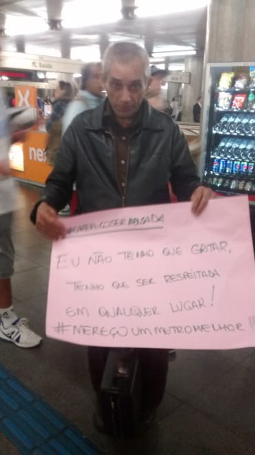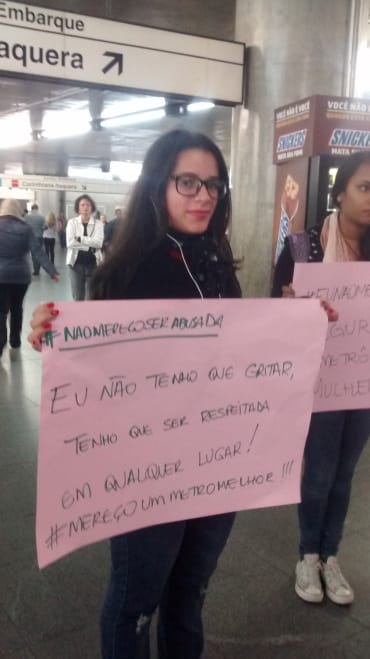 Atraindo olhares curiosos de quem passava, os cartazes traziam frases como “Deixem meu corpo em paz” e “o metrô é público, meu corpo não”, reforçando a hashtag: #eunãomereçoserabusada. Como resposta, alguns aplaudiam, outros liam disfarçadamente, e muitos paravam para tirar foto com um dos cartazes e deixar seu apoio ao ato.