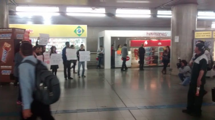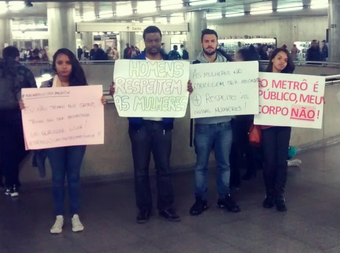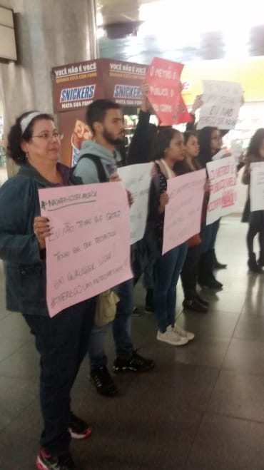 A estação da Sé abrigou, nessa terça-feira (02), um protesto em defesa das mulheres que são abusada sexualmente no transporte público. O ato aconteceu no final da tarde, com a participação de professores, estudantes, militantes da causa feminista, entre outras personalidades, e durou aproximadamente uma hora. O motivo foi o ocorrido da última quarta-feira (27), quando um homem ejaculou na calça da repórter Caroline Apple, em pleno vagão, e o Metrô declarou nada poder fazer.