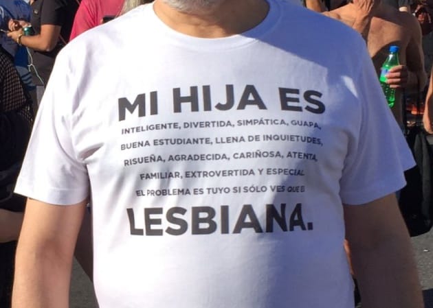 Entre os carros alegóricos, cartazes e cânticos que inundavam as ruas de Madri no último fim de semana, uma camiseta levou o prêmio de melhor mensagem. Era branca com letras pretas, pouco chamativa entre tantas cores e bandeiras de arco-íris. Mas seu trocadilho conseguiu chamar a atenção de um tuiteiro (@juancarlosmohr) que a publicou em sua conta do Twitter.