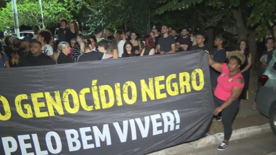Manifestantes protestam contra racismo em frente ao prédio em que morava o humorista Eddy Jr., alvo de uma vizinha