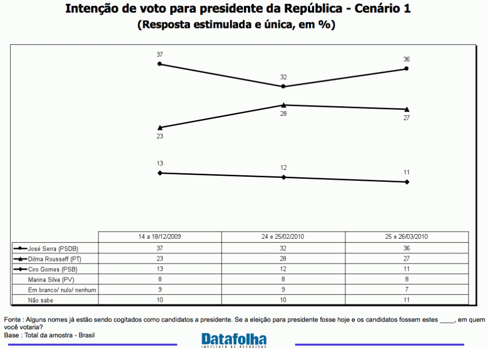 Serra volta a subir e abre 9 pontos sobre Dilma