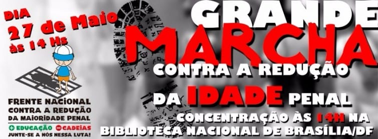 Movimentos sociais e ativistas de todo o país se reunirão em Brasília para a Marcha Nacional contra a Redução da Maioridade Penal