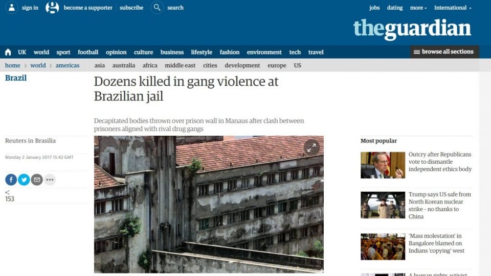 Massacre em Manaus reforça imagem global de ‘inferno’ das prisões do Brasil