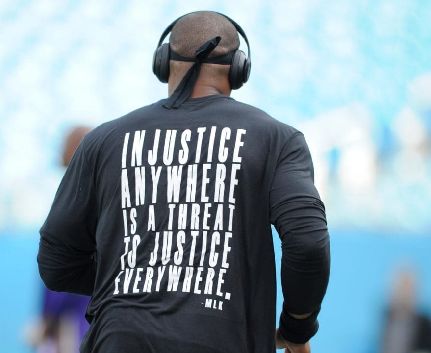 Cam Newton usa camiseta com frase de Martin Luther King antes de jogo