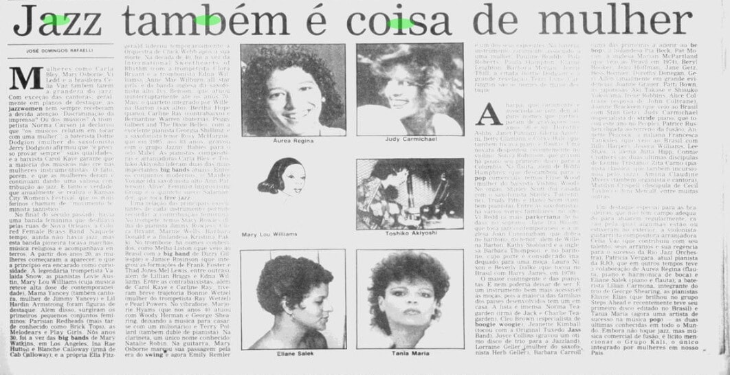 Nesse sentido, é importante sublinhar que juntamente de Tânia Maria, figuras como Alaíde Costa, Zezé Motta, Eliana Pittman, Leila Maria, Izzy Gordon, Rosa Marya Colin, Misty, e outras personalidades femininas, cada qual a seu modo (como demonstra o historiador Ricardo Santhiago), transgrediram através de sua arte os ditames de uma lógica branca-patriarcal perpetrada por setores do mercado musical, com suas expectativas estéticas calcadas em estereótipos racistas e sexistas.
