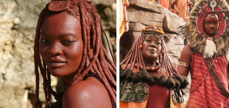 E o que dizer da tribo dos mineradores, que esta claramente inspirada na cultura da tribo Himba do norte da Namibia. A tribo Himba e conhecida por usar uma pasta feita de orquídeas vermelhas na pele, chamada de otijze.