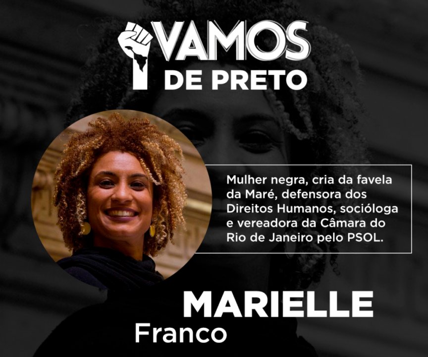 Mulher negra, cria da favela da Maré, defensora dos Direitos Humanos, socióloga e vereadora da Câmara do Rio de Janeiro pelo PSOL.