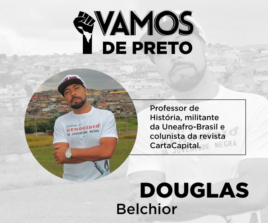 Negro Belchior nasceu e cresceu no fundão das periferias da cidade de São Paulo, nos limites entre Itaim Paulista, divisa com Ferraz de Vasconcelos, Itaquaquecetuba e Poá. É formado em História pela PUC/SP, professor Rede Pública Estadual; Fundador e professor do Movimento Uneafro-Brasil; Palestrante/Conferencista sobre a temática “História das Lutas Sociais no Brasil”, “Questão Racial no Brasil” e “Direitos Humanos”; Atualmente é consultor para a área da justiça criminal, violência do estado, encarceramento e política de drogas, do Fundo Brasil de Direitos Humanos. Participa ativamente das diversas articulações do Movimento Negro contra o Genocídio da População Negra. Ajudou a construir a Frente Pró Cotas Raciais do Estado de São Paulo e é um dos fundadores do Comitê de Luta Contra o Genocídio do Povo Preto, Pobre e Periférico.