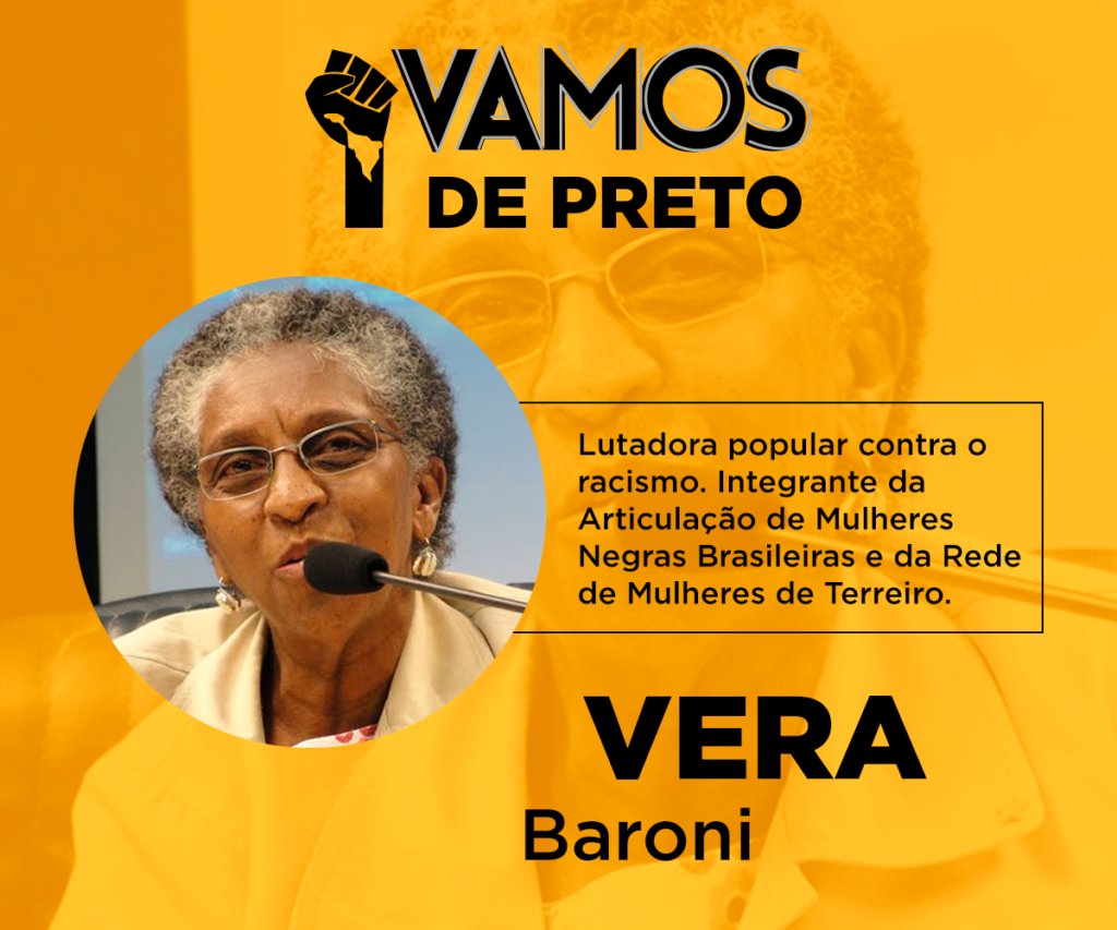 Vera Baroni nasceu no Rio de Janeiro em 16 de maio de 1945. Desde 1968 no Recife, Vera está inserida no contexto da luta popular e das mulheres negras, na defesa dos direitos humanos e enfrentamento ao racismo. É integrante da Articulação de Mulheres Negras Brasileiras (AMNB) e da Rede de Mulheres de Terreiro.